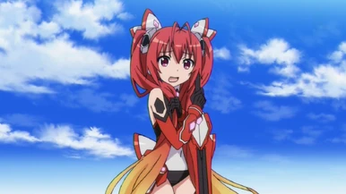 Her hair is slightly brighter than Sōji's, and it splits downward to her feet and burns into a fiery orangish as it makes its fashion down her body. She has red optics, unlike Soji's completely orangish eyes. Her accommodate consists of her Ribbons that dissever her hair into Twintails. She wears a cerise necklace effectually her neck with a crystal in the center. She wears a black and white swimsuit. On her ,arms she wears black metal cuffs with leather black gloves on her fingers. On her ,legs she wears blackness tights that are red at the acme and over her tights she wears long metal boots that are ruby-red, black, and white.